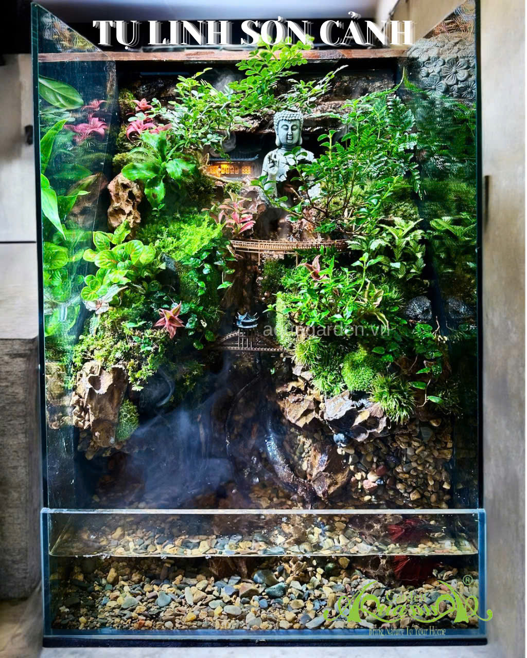 “Tụ Linh Sơn Cảnh” là một trong những tác phẩm hồ bán cạn độc đáo do AquaGarden chế tác. Lấy cảm hứng từ chốn linh sơn huyền bí, hồ tái hiện một bức tranh thiên nhiên sống động với sự kết hợp hài hòa của thác nước, cây xanh, rêu phong và tiểu cảnh kiến trúc tinh xảo.