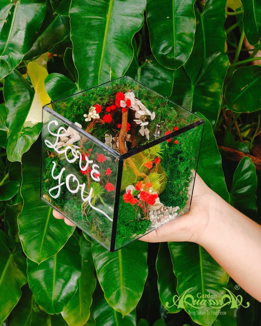 - Yêu cầu chăm sóc tối thiểu: Không cần tưới nước, bón phân hay kiểm soát ánh sáng như với terrarium rêu tươi.