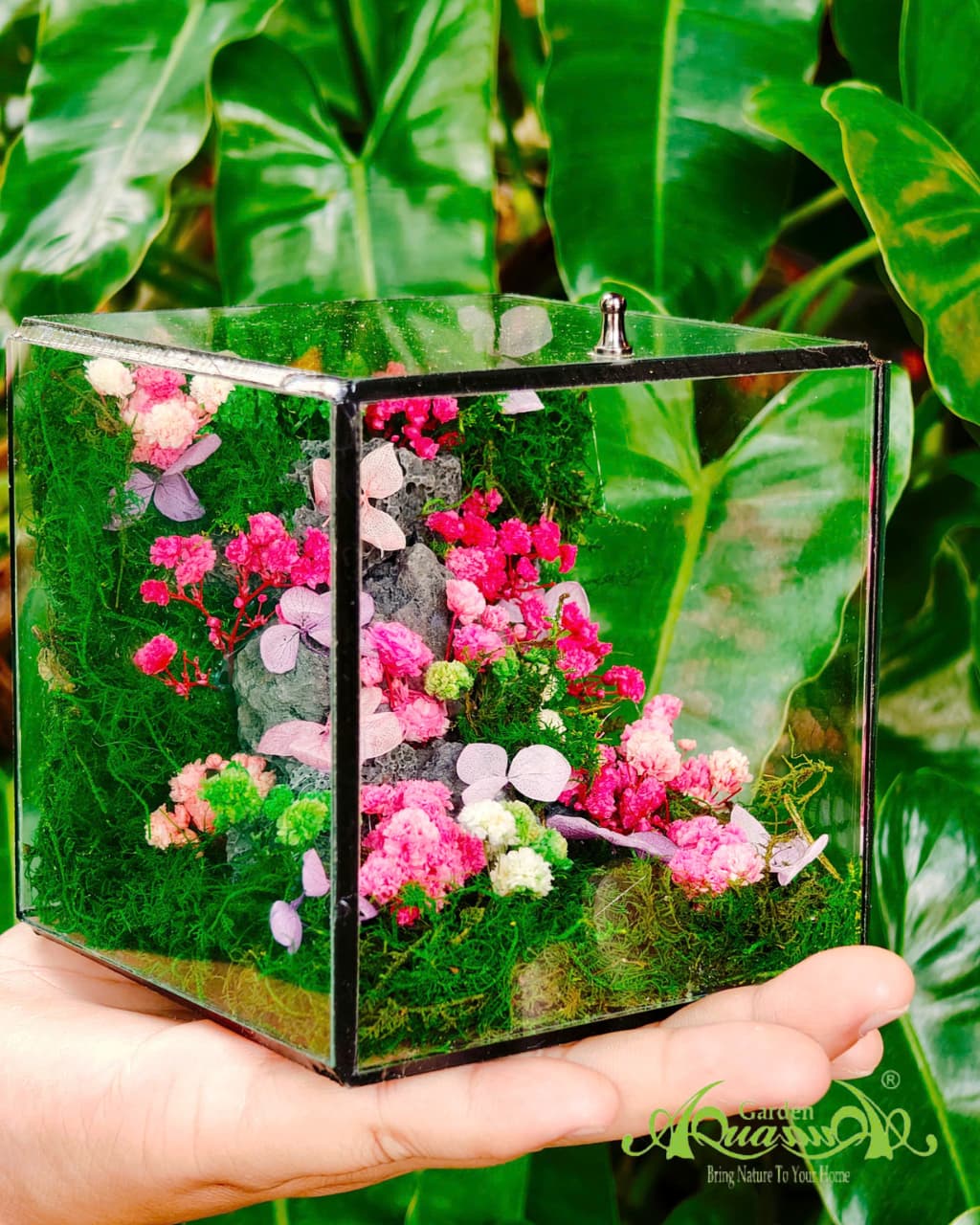 Tại AquaGarden, chúng tôi chủ yếu sử dụng phương pháp đông khô và phương pháp glycerin để tạo ra những sản phẩm terrarium rêu bảo tồn chất lượng cao, giữ được vẻ đẹp tự nhiên nhất của rêu.