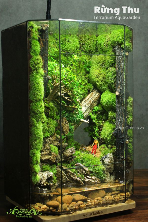 Như những chiếc lá vàng bay trong gió thu, Terrarium Rừng Thu tỏa ra sắc màu ấm áp và tràn đầy sự thơ mộng. Nhìn từ xa, trông như một viên ngọc quý lung linh giữa không gian bình yên. Khi lớp Rêu phong dày dặc, những lát gỗ rải trên mặt cỏ. Ta thấy như được tìm lại sự kết nối với tự nhiên và khám phá những điều tuyệt diệu mà cuộc sống đã che đi. Hãy để Terrarium Rừng Thu trở thành nguồn cảm hứng cho bạn, khiến bạn nhớ lại những kỷ niệm ngọt ngào của tuổi thơ và khám phá sự tuyệt diệu của thiên nhiên.