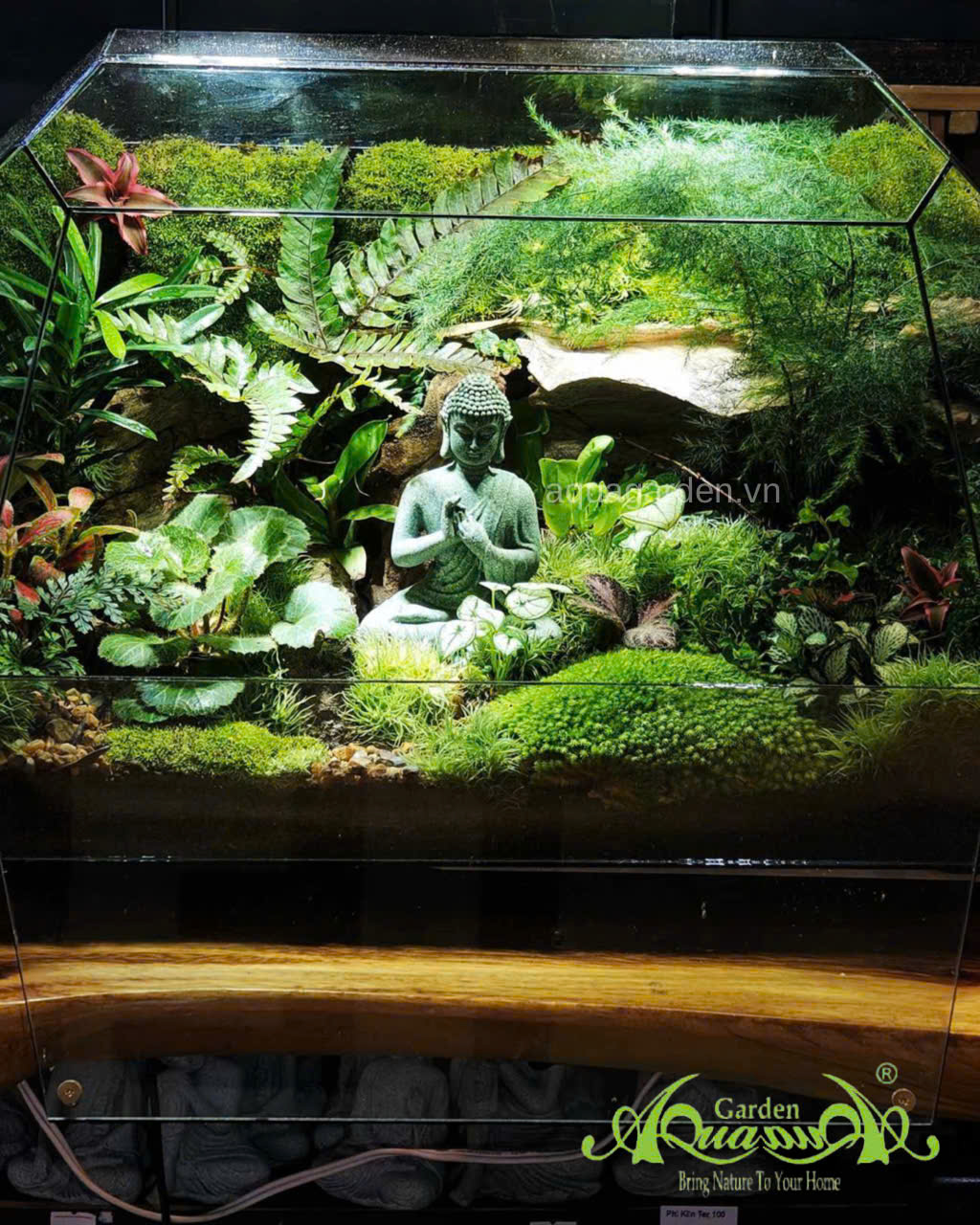 Một chiếc terrarium với cái tên Forest of Enlightenment, lấy cảm hứng từ thiền định và sự hòa hợp với thiên nhiên, được thể hiện qua các yếu tố sau: