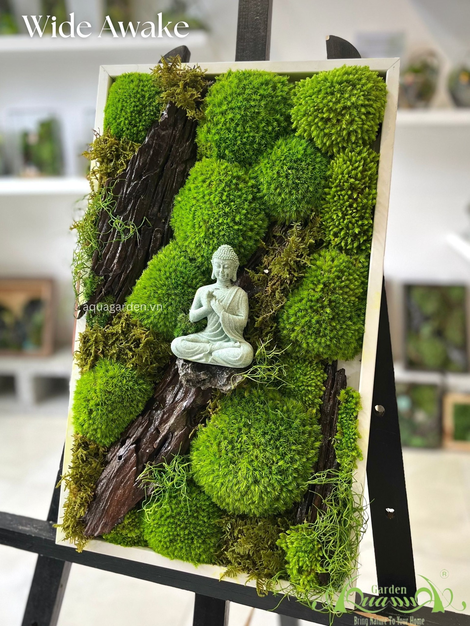 Sự kết hợp giữa rêu bảo tồn và tượng Phật mang lại vẻ đẹp thanh tịnh, yên bình. Đây là món quà tuyệt vời cho những không gian thiền định hoặc để trang trí phòng spa.